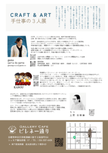 11月3日(日)〜4日(月)CRAFT&ART 手仕事の3人展@ギャラリーピレネー通り